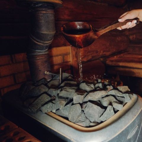 Вместительная беседка. Парилка топится только на берёзовых дровах. В распоряжении три вида веников, дуб, берёза, липа. Банные принадлежности в наличии, шапки, полотенце, сланцы. Душевая.
