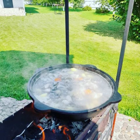 Также — своя кухня, меню. Большой набор различной посуды, столовые приборы. Музыка, TV, караоке. Волейбольное поле. Теннис. Игра в дартс. Бадминтон. Нарды.